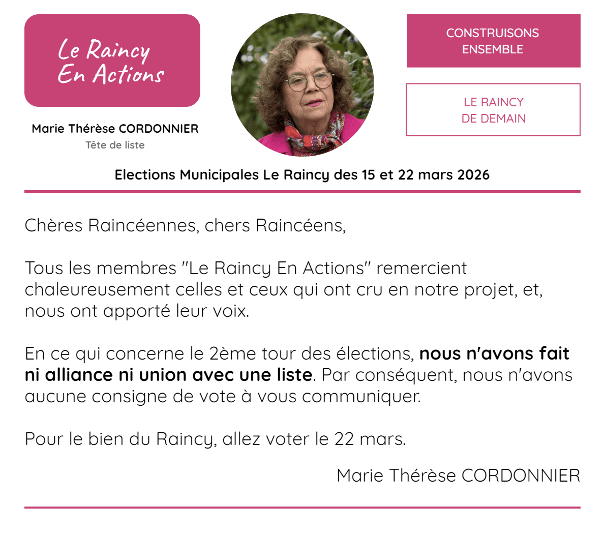 Je souhaite participer à l’équipe Le Raincy En Actions afin de contribuer à maintenir le lien social des habitants de notre commune, essentiel au vivre ensemble.